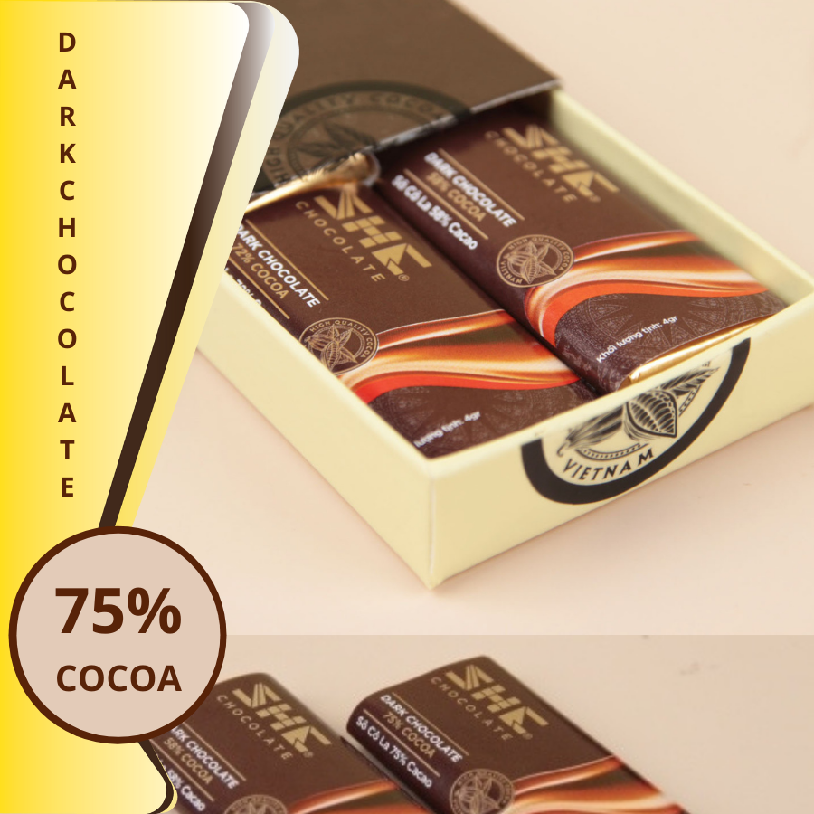 SHE Dark Chocolate 75% cocoa mang lại vị đắng nguyên chất, giữ chọn được tinh hoa của cacao Việt Nam. Là hương vị đặc biệt mạnh mẽ nhất: đậm đà, kiêu xa, bản lĩnh, khó chinh phục,…Nhưng lại có nét quyến rũ tự nhiên, chỉ cần một lần thưởng thức sẽ đem lại vấn vương khó có thể nào tách ra khiến ta nhớ mãi.