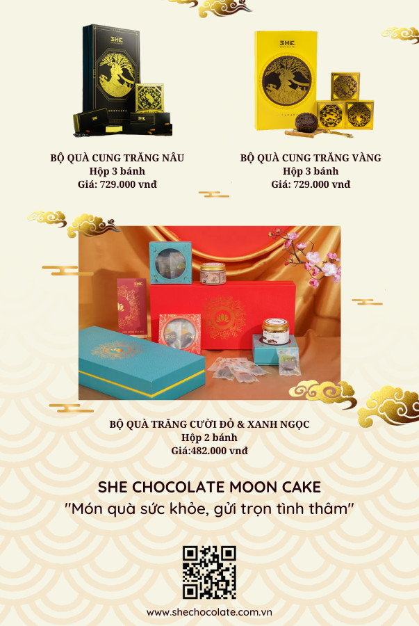 Tết Trung Thu – một trong những lễ hội truyền thống quan trọng nhất trong năm của người Việt Nam. Đây là dịp để gia đình sum họp và cùng nhau tận hưởng những khoảnh khắc đầm ấm cùng thưởng thức những chiếc bánh trung thu thơm ngon. Để làm cho mùa Trung thu của bạn trở nên đặc biệt hơn, hãy đặt mua bánh trung thu online ngay hôm nay và hưởng nhận ưu đãi hấp dẫn mà SHE Chocolate mang đến cho bạn.