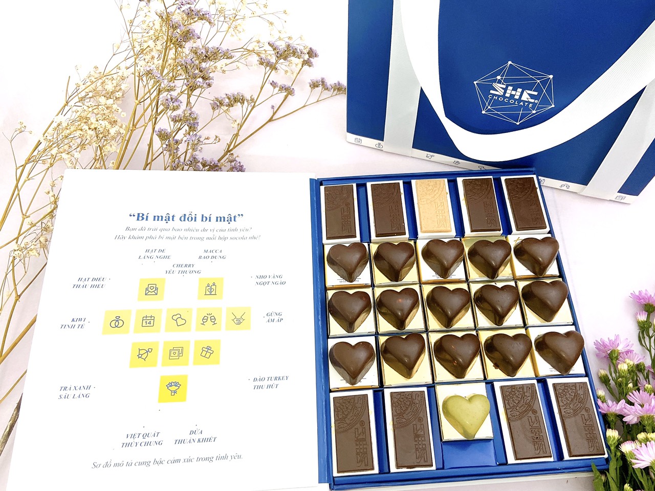 Bên trong hộp quà tặng Valentine 2023 của SHE ẩn chứa bí mật về 25 cung bậc cảm xúc kì diệu chỉ có trong tình yêu, mang đến một hương vị hấp dẫn khó quên. Từ vị ngọt ngào của sữa, thơm đắng đậm đà của cacao nguyên chất, ngọt thanh của trái cây quyến rũ,… chắc hẳn sẽ đưa “người ấy” lạc vào thiên đường của tình yêu và của từng cung bậc vị giác.