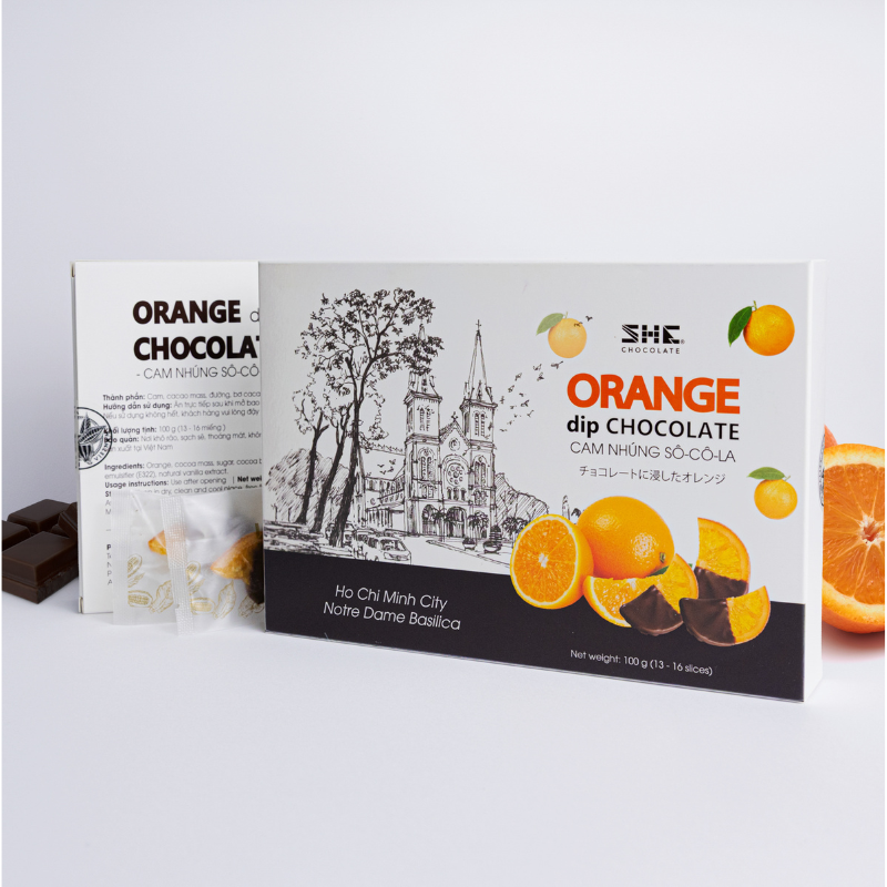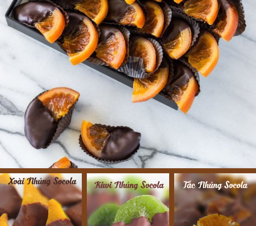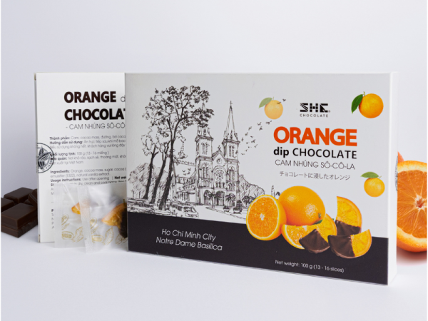 The product contains soft and delectable chocolate-dipped oranges. Vietnamese chocolate is known for its rich flavor, which creates a delightful sensory experience. The combination of one-of-a-kind patterns and delectable chocolate-dipped oranges results in a product that is not only a travel gift but also a work of art that expresses Vietnamese culture and cuisine.