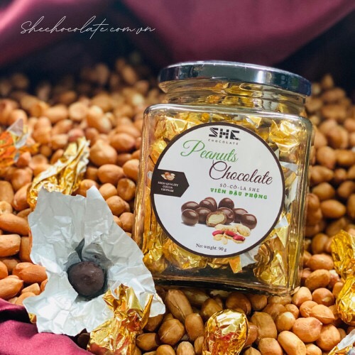 SHE Chocolate là thương hiệu socola nổi tiếng tại Việt Nam, được yêu thích bởi chất lượng sản phẩm và phong cách thiết kế đẹp mắt, sang trọng. Đặc biệt, SHE Chocolate còn cung cấp socola viên đậu phộng đặc biệt, là một trong những món ăn vặt được nhiều người yêu thích.